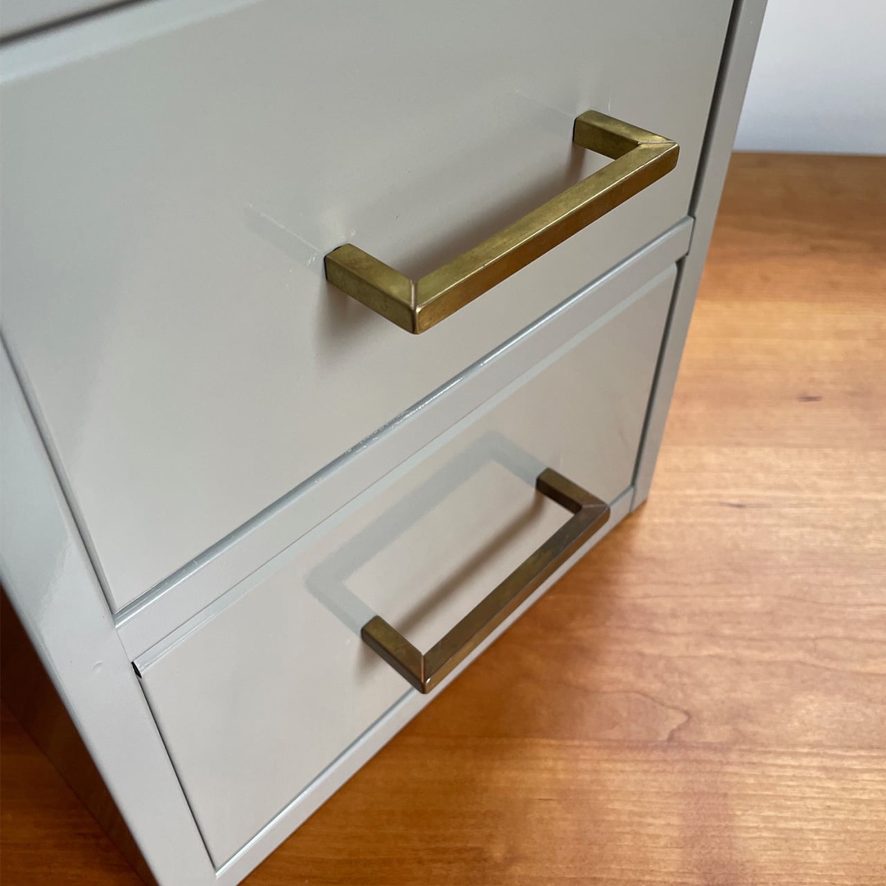 上段と下段、同じ真鍮ですがよく見ると仕上げの違うハンドルを取り付けているのも面白い部分。