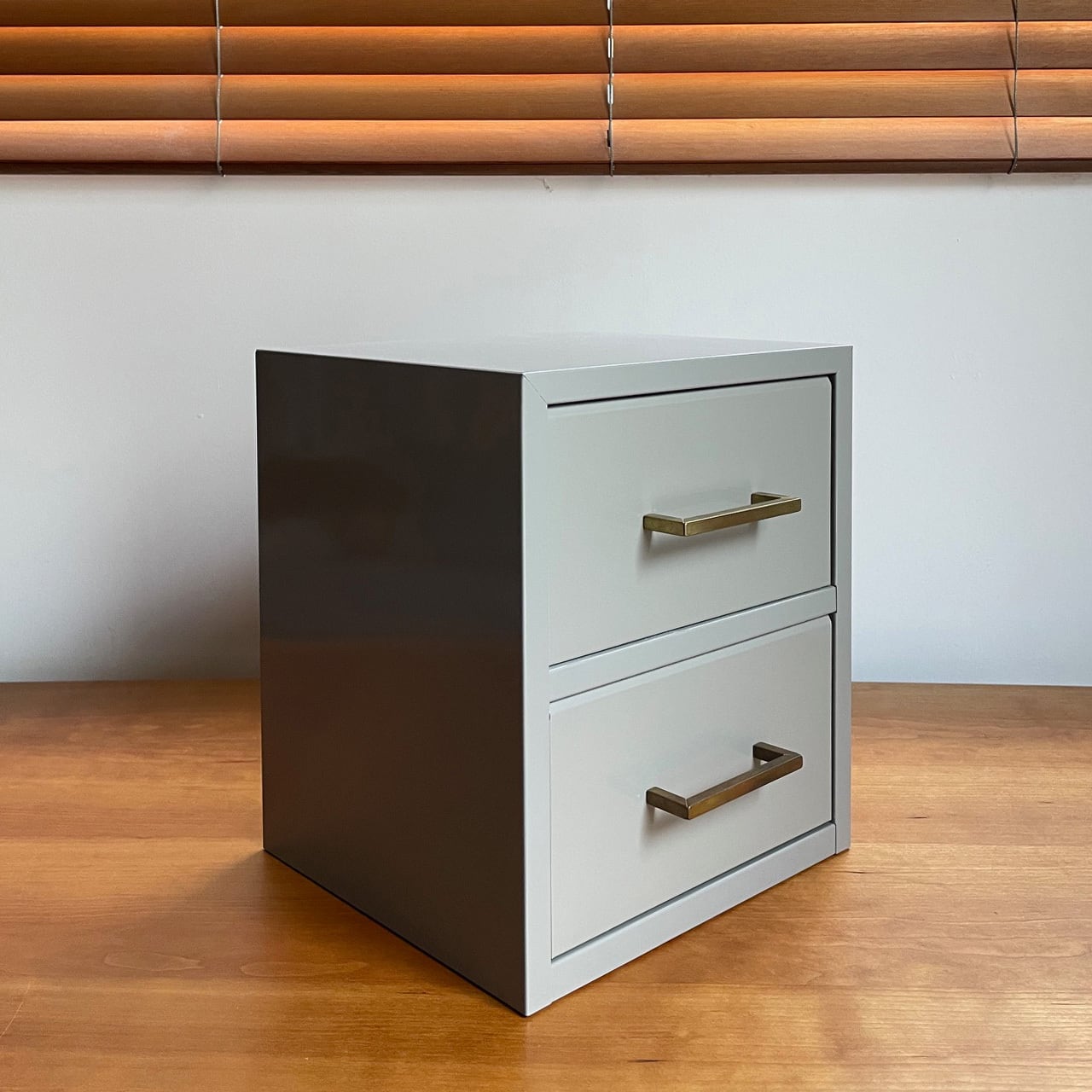 このスチールボックスはそんな薬箱をシンプルにし、ハンドルなどをホルツでカスタムした一点モノ。引き出しに関しては差し込むだけのシンプルな構造です。