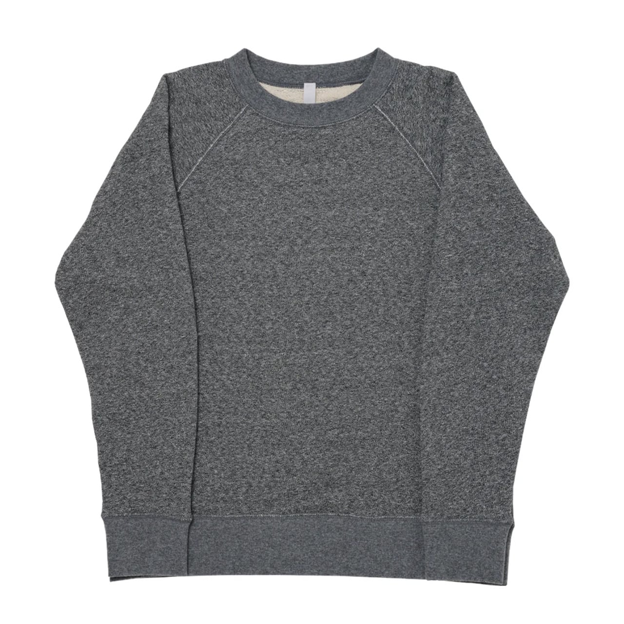 縫製は東北の工場でフラットシーマで縫製されていて、裏も平らに仕上がるので肌に触れてもごろつかなくなっています。袖はラグランになっており、こちらもストレスなく着てもらえる特徴の一つ。