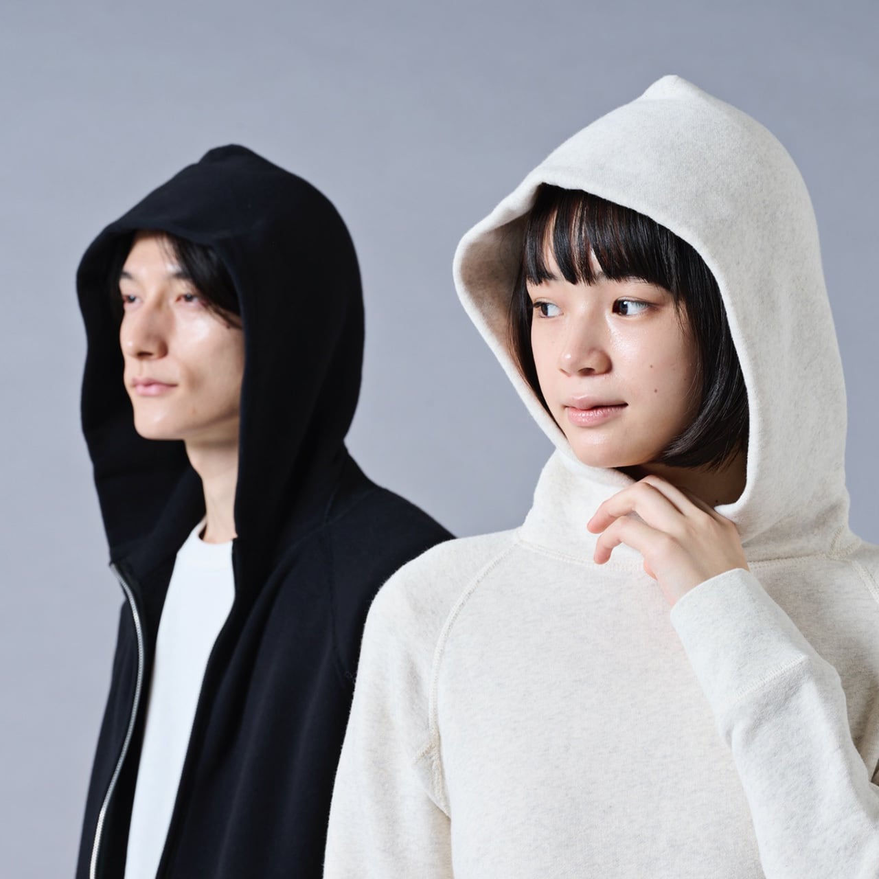 スペイン産の超長綿を使用し、とても長いループが特徴です。裏毛は僅かに起毛させた微起毛で、最高の肌触り。独自のカスタムを施した世界に1台しかない編み機から生まれる素材感は唯一無二と言っても過言ではないでしょう。