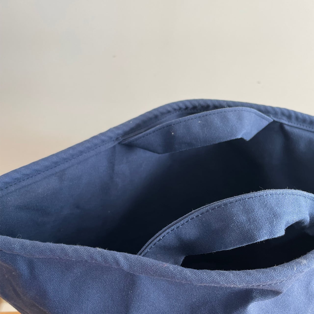 25Lのわりと大き目のバッグです。バッグとしてはもちろんですが、リビングでブランケットを入れたり、おもちゃ入れにしたりとコンテナ用途としても大活躍です。かごやプラスチック製のコンテナにはない優しい帆布の生地が中に入れるものを傷つけることなく収納できます。